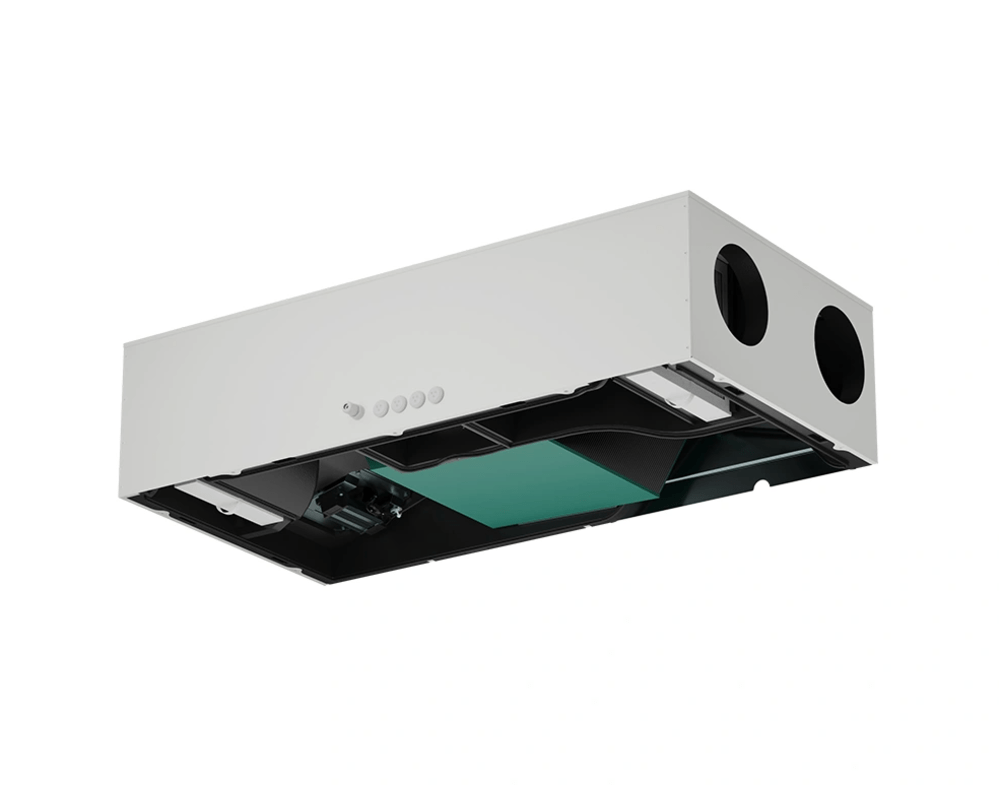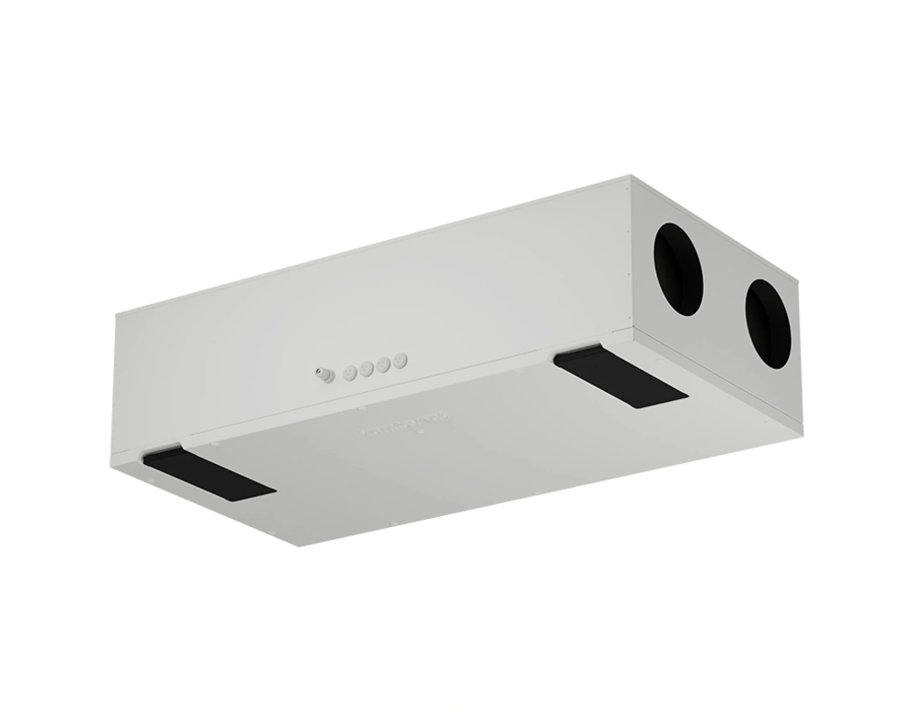 - KOMFOVENT Domekt CF 150 F C6M su entalpiniu šilumokaičiu grąžina drėgmę į patalpas.