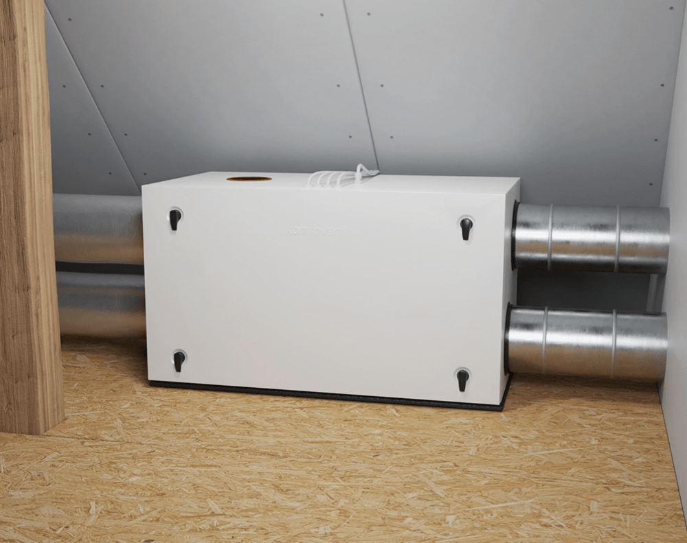 - KOMFOVENT Domekt R 600 H C6M su rotaciniu šilumokaičiu grąžina drėgmę į patalpas.