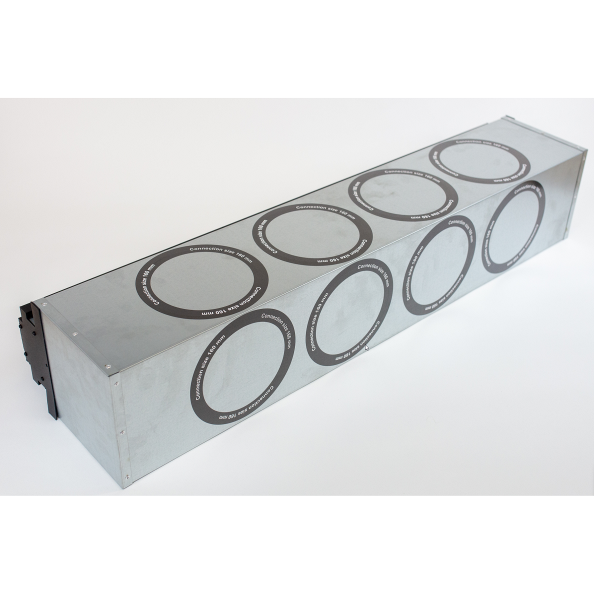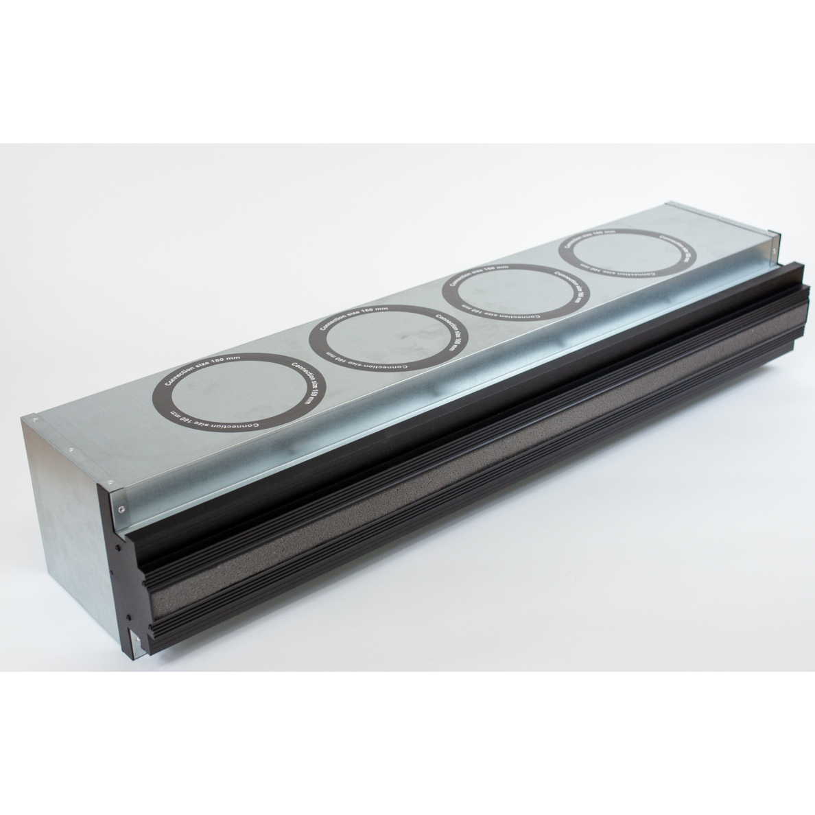 Linea+Box 1000-125-10; coanda efektas; akustinė pajungimo dėžė; 1000 mm ilgio, 10 mm plyšys, d125x4 pajungimas