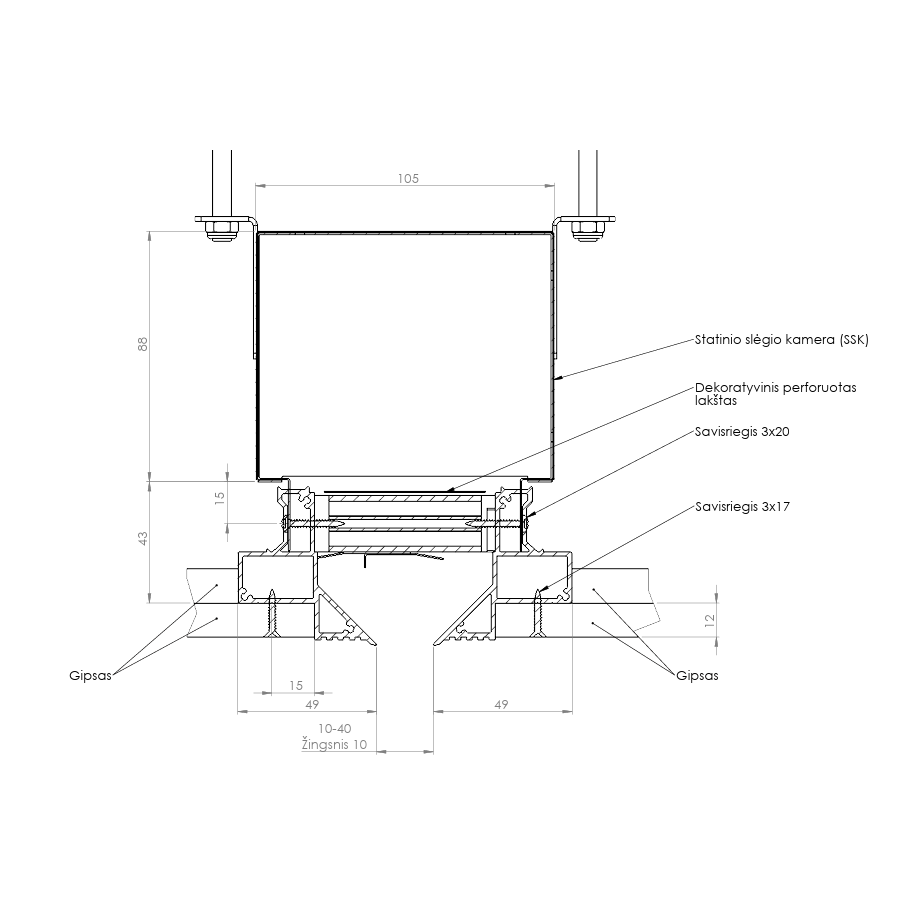 - Linea+Box 1000-160-30 paslėpto montavimo plyšinis difuzorius gipsinėms luboms.
