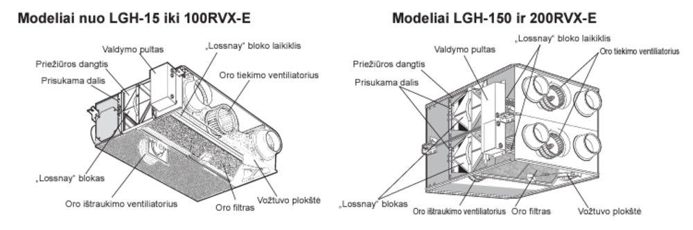 - Mitsubishi Electric Lossnay LGH-160RVX su patentuotu šilumokaičiu.