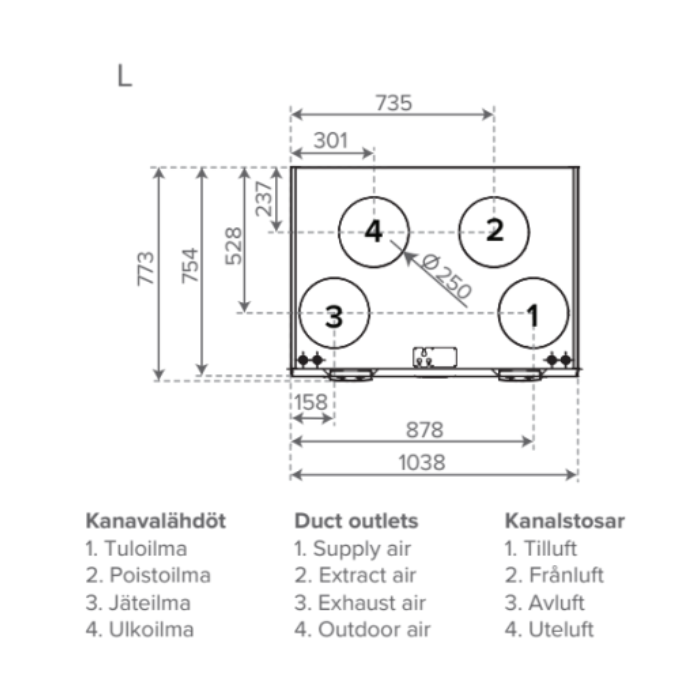 MyVallox 245 CFi RA02 vėdinimo įrenginys su aliuminio šilumokaičiu. 800 m3/h 200 Pa. Constant-Flow