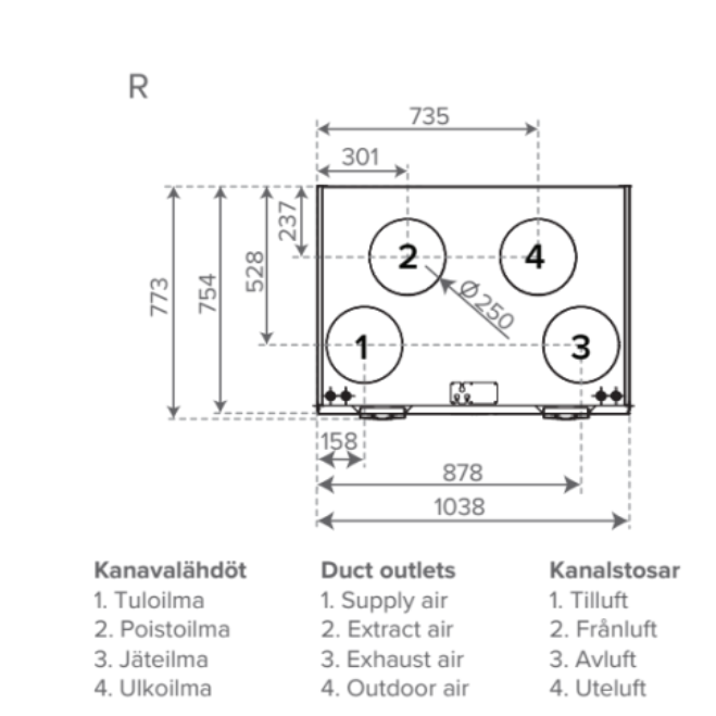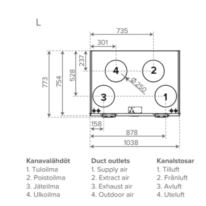 MyVallox 245 CFi VKL LA02 vėdinimo įrenginys su aliuminio šilumokaičiu ir vandeniniu šildytuvu; 800 m3/h 200 Pa. Constant-flow
