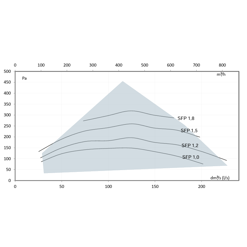 - Našumas: iki 800 m³/h, slėgis iki 200 Pa.