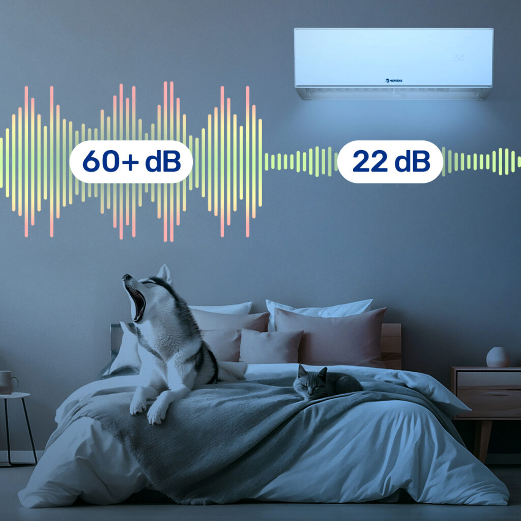 Tylus veikimas – beveik negirdimas NØRDIS kondicionieriai dirba itin tyliai, todėl jų praktiškai nepastebėsi. Net ir naktį jie netrukdo ilsėtis ar susikaupti, todėl puikiai tinka miegamiesiems ar darbo kambariams.