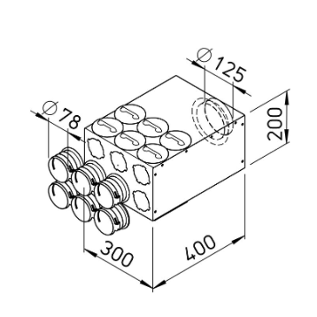 Oro paskirstymo kolektorius 6×75-125 Vallox Blue Sky – 2 eilių