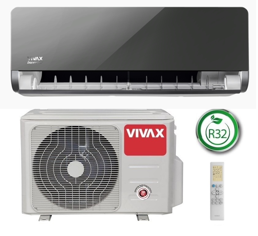 Vivax H+ Design savybėsEfektyvus darbo temperatūros diapazonas nuo -25° C iki +24° C šildyme, nuo -15 °C iki +50 °C vėsinime;Savaiminio išsivalymo technologija. Po to kai oro kondicionierius yra išjungiamas jo vidinio bloko ventiliatorius nesustoja, kol nepašalina drėgmės iš šilumokaičio. Taip yra užkertamas kelias pelėsių, grybelių ir bakterijų susidarymui;I FEEL funkcija užtikrina patalpos temperatūros reguliavimą 0,5 °C tikslumu. Temperatūros jutiklis įmontuotas nuotolinio valdymo pultelyje;24 valandų laikmatis;Automatinio paleidimo iš naujo funkcija, naudojanti ankstesnius nustatymus;BIO filtras naikina virusus ir bakterijas bei sulaiko kietąsias daleles, kad jos neterštų patalpos oro;Režimas AUTO SWING tolygiai išsklaido orą visoje patalpoje;Išmanusis oro srautas (180° sparnų judėjimas leidžia orui tekėti horizont. ir vertikal. krypt.)ECO režimas sutaupo iki 60 % elektros energijos per aštuonių valandų veikimą.Budėjimo režimas. Jo metu sistema sunaudoja vos 0,5 W / 1,0 W energijos per dieną;Ekologiškas šaltnešis R-32;Įtampos stabilizavimo ir saugaus paleidimo sistema naudojant žemą įtampą;+8°C temperatūros palaikymas;Stilingas vidinio bloko LED ekranas.Intelektuali atitirpinimo funkcija.Kokybiško miego režimas;Pagrindinių blokų ir režimų trikdžių autodiagnostika;Jonizatorius;Galimybė papildomai prijungti WIFI modulį.