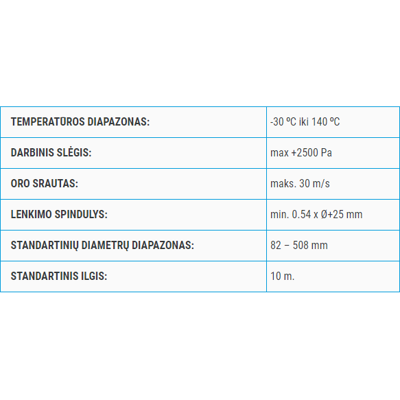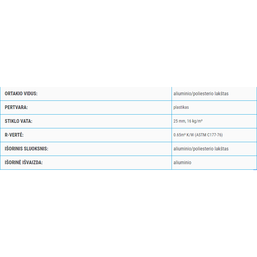 • Plastikinė pertvara tarp ortakio ir stiklo vatos apsaugo nuo stiklo vatos dalelių difuzijos.