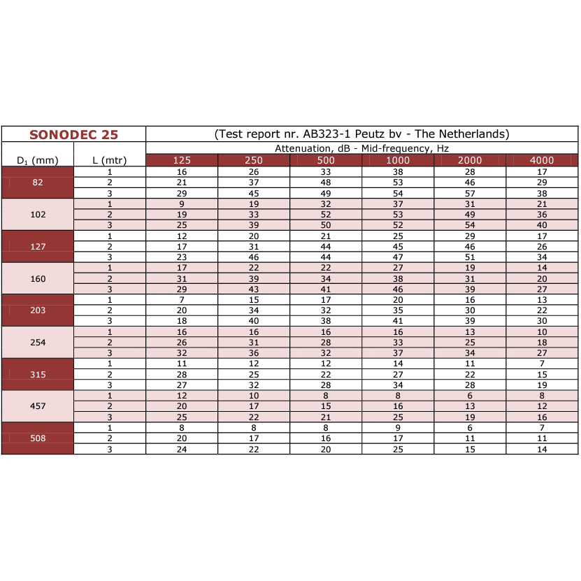 • „Sonodec 25“ ortakiai susideda iš perforuoto aliuminio/poliesterio lakšto, kurio vidinė pusė yra termiškai ir akustiškai izoliuota su stiklo vata, o išorė apvilkta aliuminio sluoksniu.
