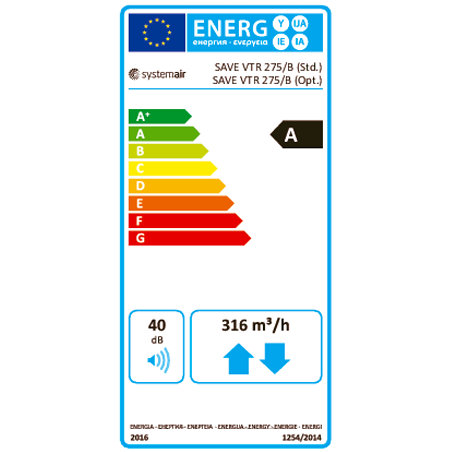 - Systemair SAVE VTR 275/B L rotacinis sieninis rekuperatorius su didelio efektyvumo šilumogrąžiu.