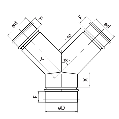 - Valcuotas 45° trišakis-kelnės su 200 mm jungtimis.