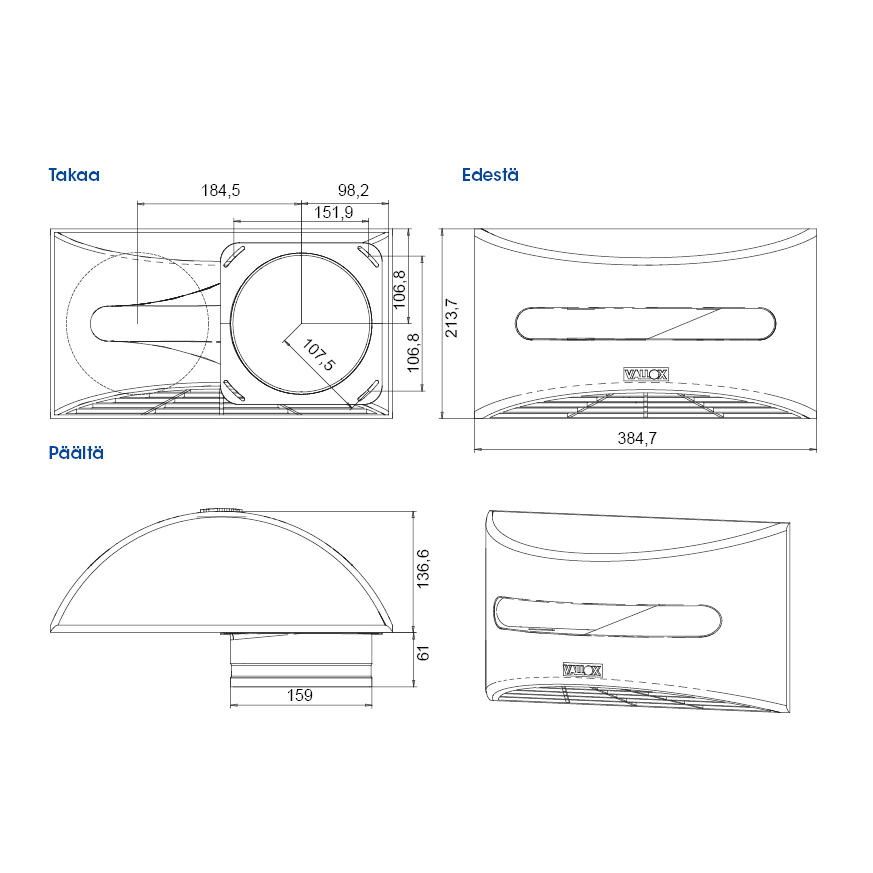 - Vallox In/Out 250 baltos spalvos universalios kombinuotos lauko grotos.