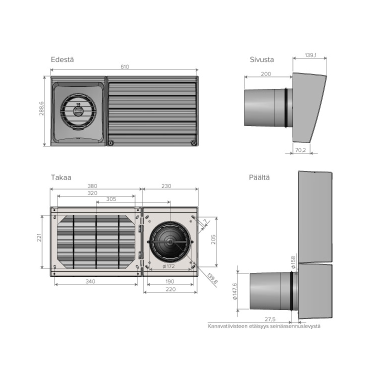 Vallox Out/in Vario D160 bgrey, R/L