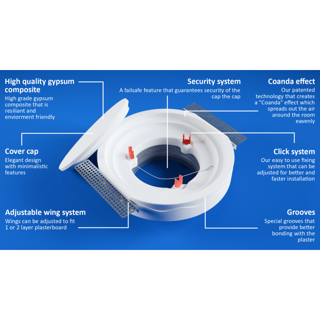 - Ventmann priglaistomas gipsinis Circle difuzorius su COANDA efektu.