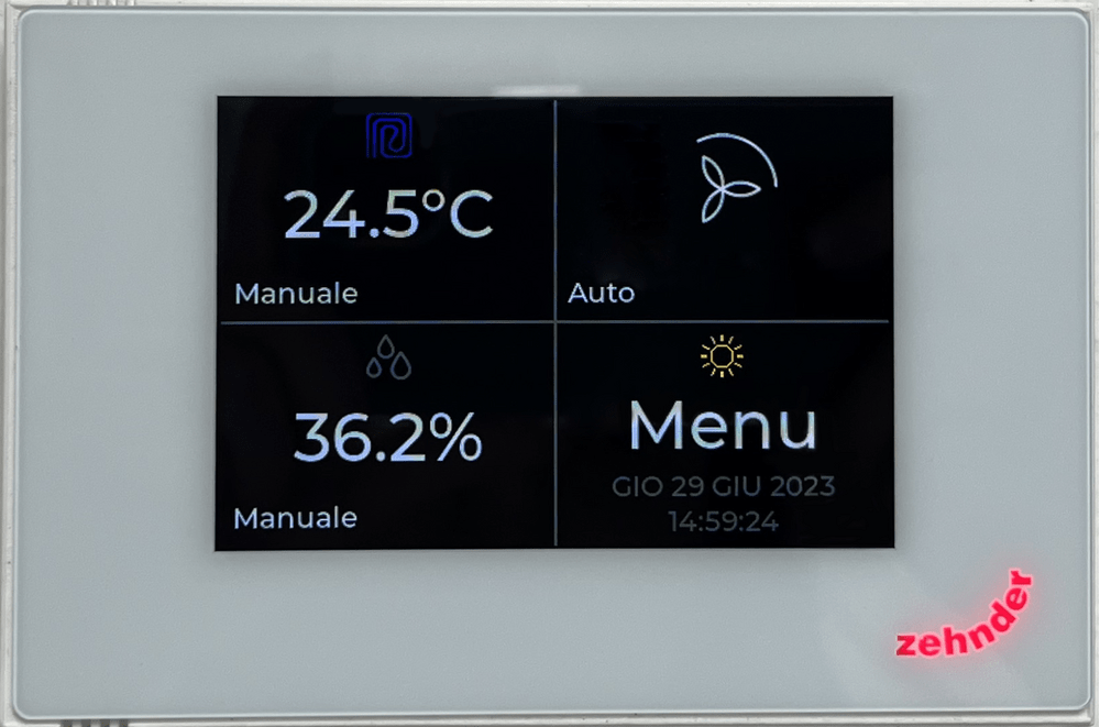 - ZEHNDER Multi Control pultas su spalvotu liečiamu ekranu.
